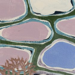 Frances Belle Parker is a proud Yaegl woman, painter and installation artist from Maclean, New South Wales. She is deeply inspired by her Mother’s land (Yaegl land) and the Island in the Clarence River that her Mother grew up on, Ulgundahi Island.