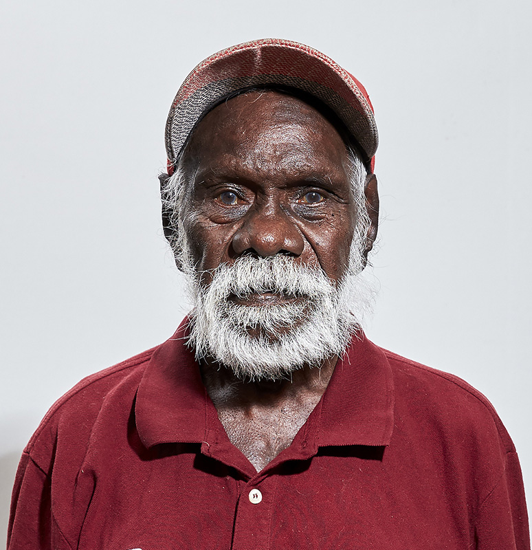 Gordon Barney was born and grew up on Alice Downs Station. His father taught him stockwork and he became known as a skilled horsebreaker and buckjumper (rodeo rider). When Gordon worked as a stockman, he would often carry with him a saddle bag for his ochre collection. At the end of his mustering shift, he would have a bagful of ochres that he sourced from riding through his country.
