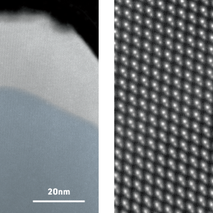 Microscopes are tools that have evolved from the earliest days of small hand-held glass lenses into large and sophisticated instruments that use light, electron and ion beams to reveal some of the deepest secrets of living things and the detailed structures of the materials that make up our world. Inside the microscope, light or electron beams either scan over the surface of a sample or shine through the sample to produce images that hold the stories to be read. The micrographs in this exhibition were created on transmission electron microscopes (TEMs) where an electron beam passes through a very thin slice of the sample being examined. This gives a flat-looking image, rather like an aerial view of the sample. Read more about the microscopy below.