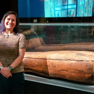 Kathryn Green on a TEM at the University of Queensland. Kathryn took the image of a fig tree leaf.